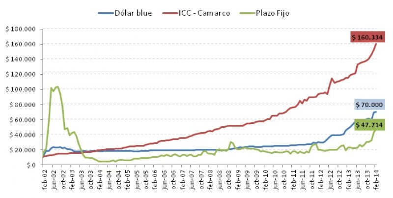 En la última década, el valor de los inmuebles evolucionó en sintonía con las variaciones en los precios y en el tipo de cambio. Cada peso invertido en inmuebles en 2002, se convirtió a fines de febrero de 2014 en aproximadamente 16 pesos, más del doble del rendimiento de los dólares y tres veces más que la inversión en plazos fijos.